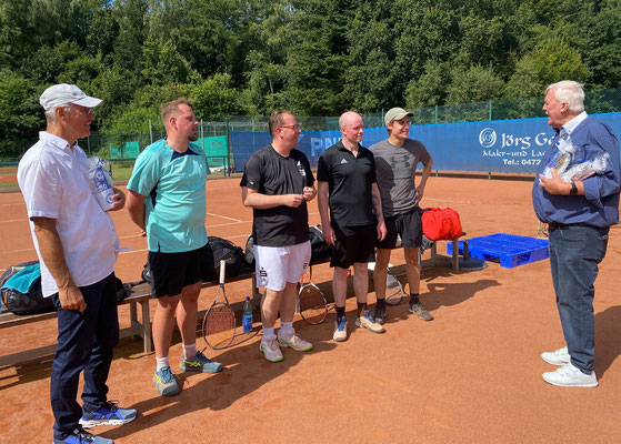 Im Anschluss an die Matches fand die feierliche Ansprache statt. Der zweite Vorsitzende des Tennisclubs, Gerhard Vergien, blickte in seiner Rede auf die bewegte Geschichte des Vereins zurück und bedankte sich bei allen, die über Jahrzehnte hinweg das Vereinsleben geprägt haben. Auch Herr Rüdiger Sauer vom Kreissportbund sowie Herr Dietmar Rehfeld von Sport in Cuxhaven, würdigten das langjährige Engagement des Clubs und gratulierten zum Jubiläum.
